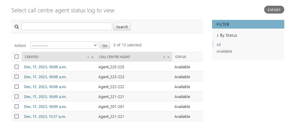 The Agent Status Log Viewer allows for an agent’s availability to be measured over time.