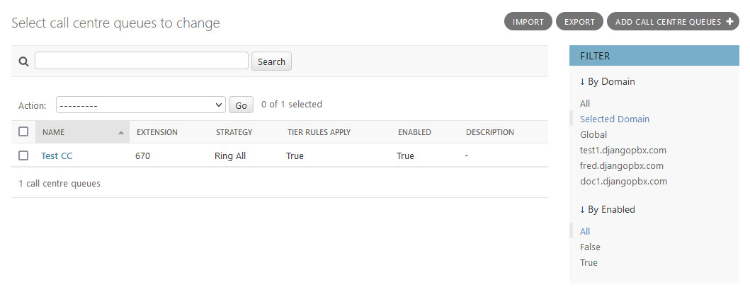 Delete selected Call Centre Queues