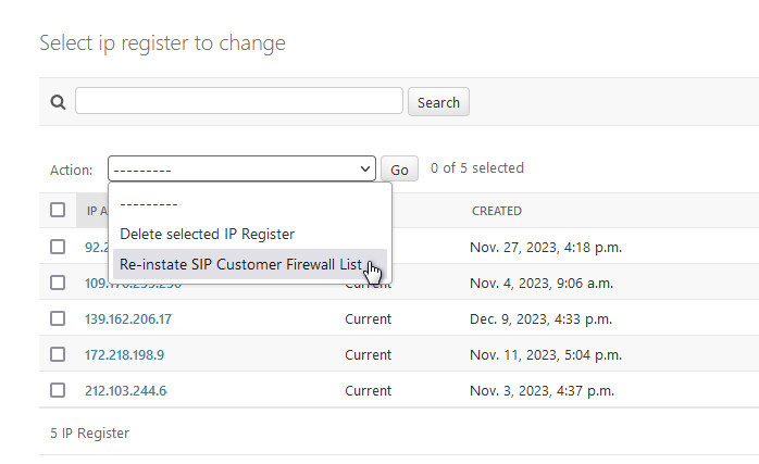 The SIP Customer List can also be reinstated from the command line see: reinstatefwsipcustomerlist.