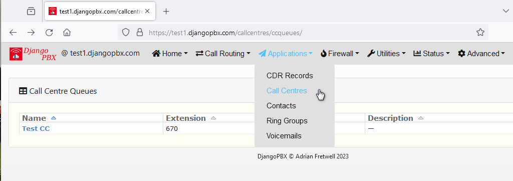 An ordinary user with appropriate Call Centre permissions has access to a restricted subset of these settings. The queues are accessed via the Call Centres application